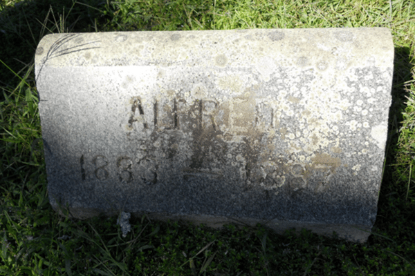 The grave of Alfred Henry Larson, who was struck and killed by a Shepaug train crossing Plumtrees Road on May 4, 1887, is in his family's plot in the Center Cemetery.