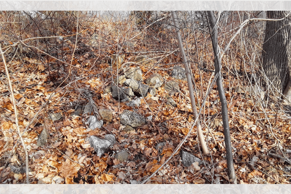 Stony Hill Siding Platform Foundation - This pile of rocks across from 174 Walnut Hill Road and within the Joyce Dixon Nature Preserve may be the last vestige of a foundation for a wooden platform that once served as the Stony Hill Siding for the Litchfield Division of the New York, New Haven & Hartford Railroad. The siding was used only for freight purposes and not passenger service. (Author's photo)